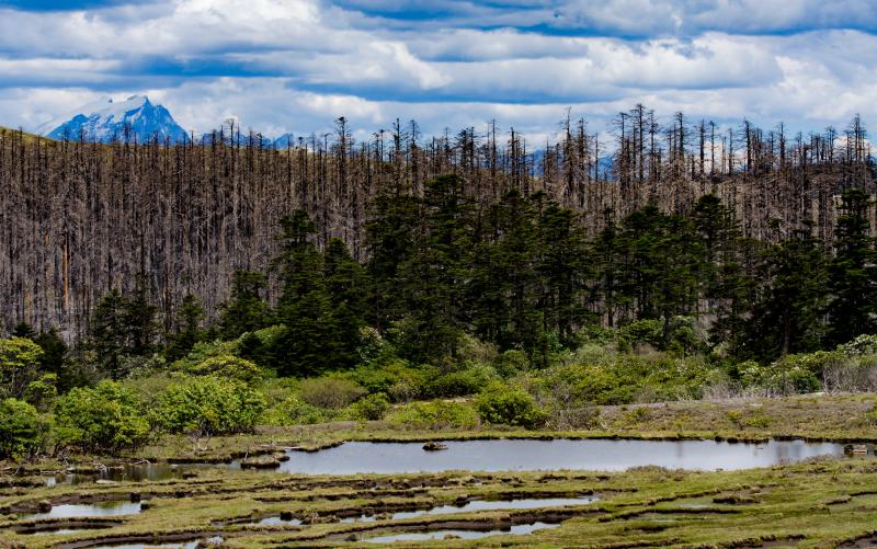 碧沽天池周圍30多平方公里的地方被原始森林覆蓋,樹木高大挺拔,多為云杉和冷杉。還有綠茵茵的牧場、安靜的牛羊群,以及動人心魄的杜鵑花。