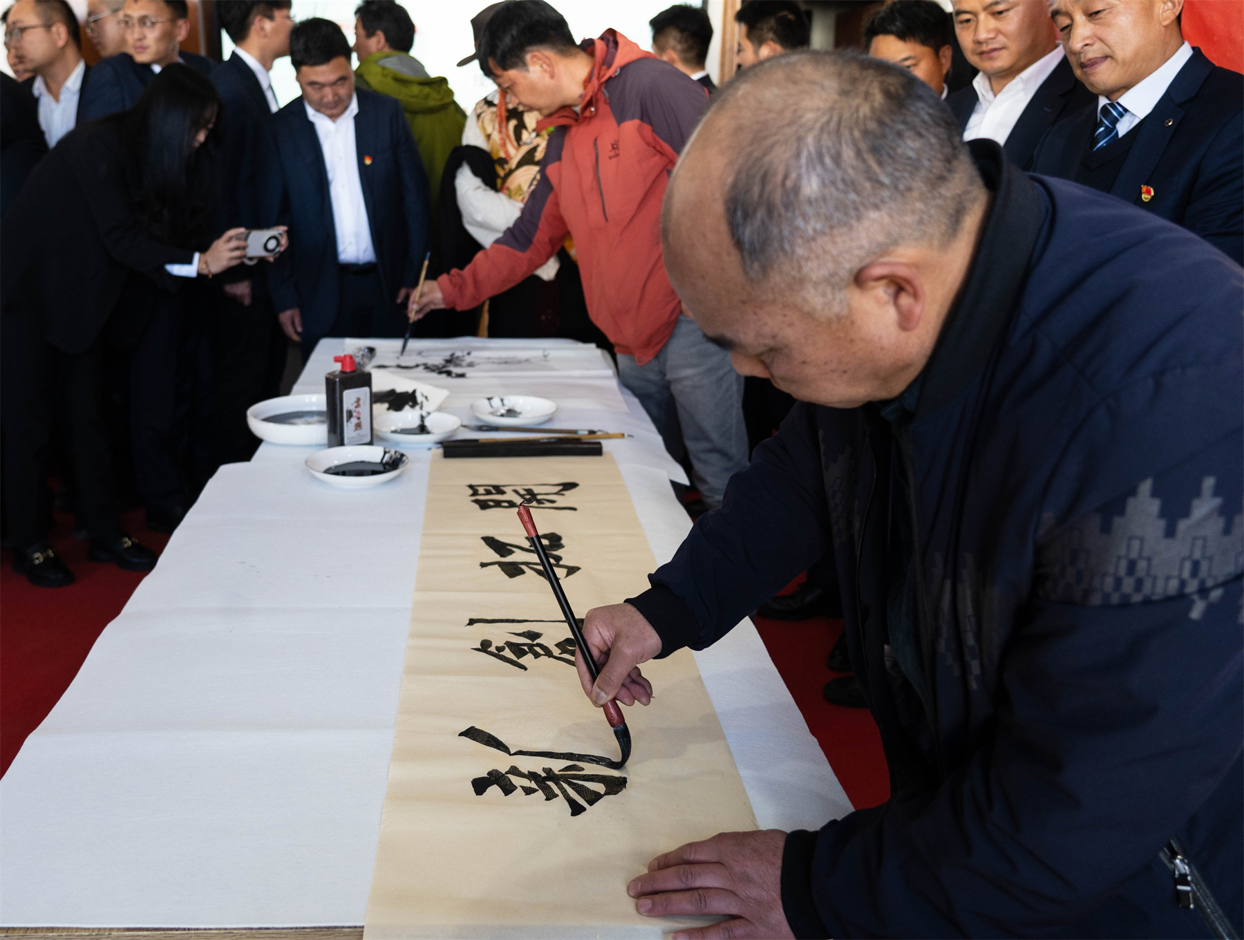 活動中,迪慶州書法家協(xié)會、美術(shù)家協(xié)會、攝影家協(xié)會的藝術(shù)家們現(xiàn)場創(chuàng)作書法、美術(shù)作品,開展攝影創(chuàng)作技術(shù)心得交流講座,迪慶州歌舞團(tuán)、舞蹈家協(xié)會、音樂家協(xié)會和鐵塔迪慶分公司員工代表帶來了精彩的文藝表演。演出精彩之處,臺下觀眾掌聲和喝彩聲此起彼伏,現(xiàn)場氣氛熱烈,讓員工們在家門口品位“文化盛宴”。