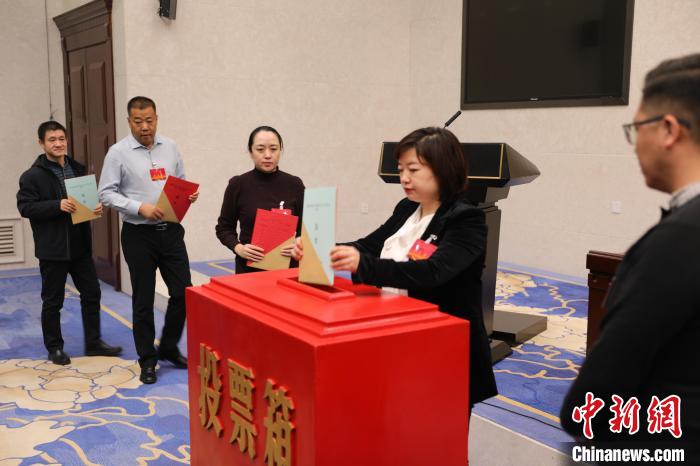 圖為會(huì)議選舉產(chǎn)生新一屆青海省知聯(lián)領(lǐng)導(dǎo)班子。劉鋒攝