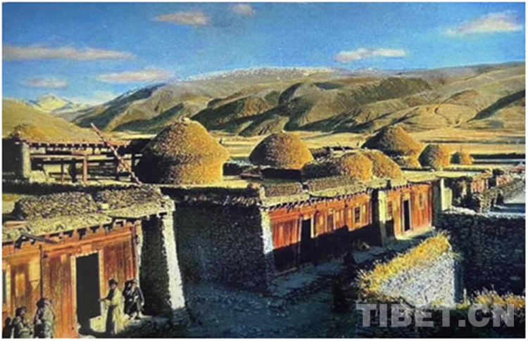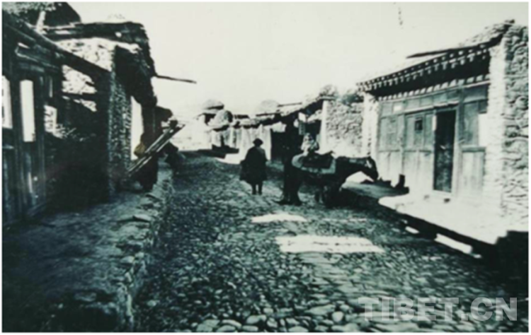 圖為20世紀30年代的泰寧鎮(zhèn)街村,屋頂上的青稞垛格外顯眼