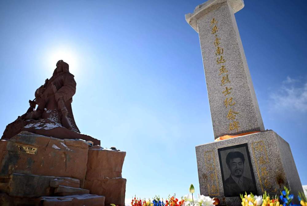 這是位于昆侖山口的索南達(dá)杰紀(jì)念碑(1月18日攝)。新華社記者 張宏祥 攝