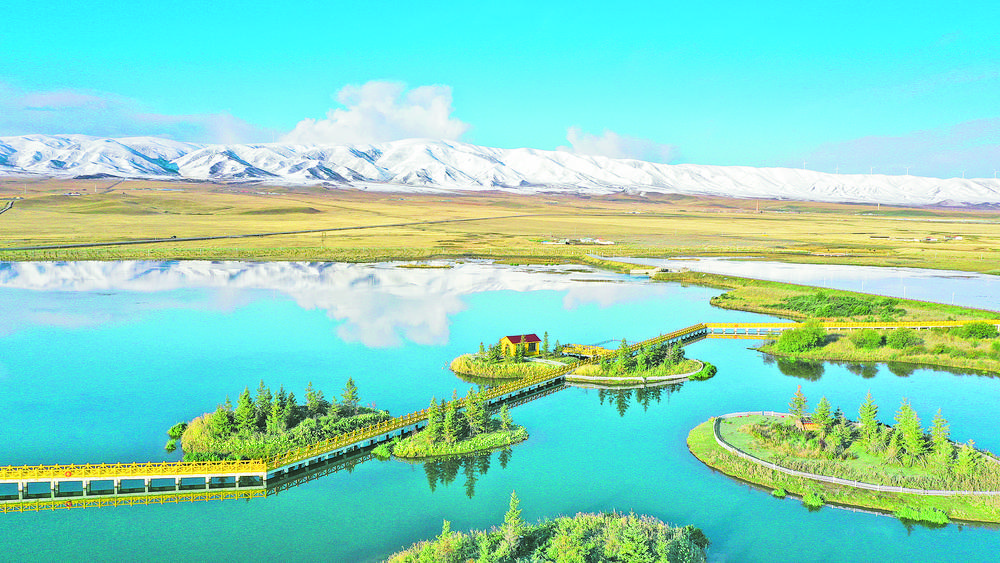 自海北藏族自治州海晏縣境內(nèi)的包呼圖山蜿蜒前行,一滴滴匯聚的雪山融水時而湍急時而平緩,在流經(jīng)草原、山川后沖刷出適宜人類居住的谷地,山水相映、水城相依,寫就人水和諧共生新篇章。