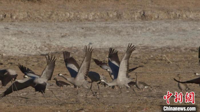 珍稀鳥類黑頸鶴、灰鶴現(xiàn)身青海格爾木