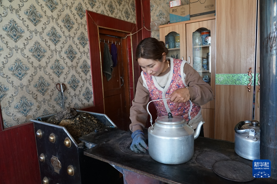 1月27日,普毛東主的妻子正在煮奶茶。新華社記者 解統(tǒng)強(qiáng) 攝