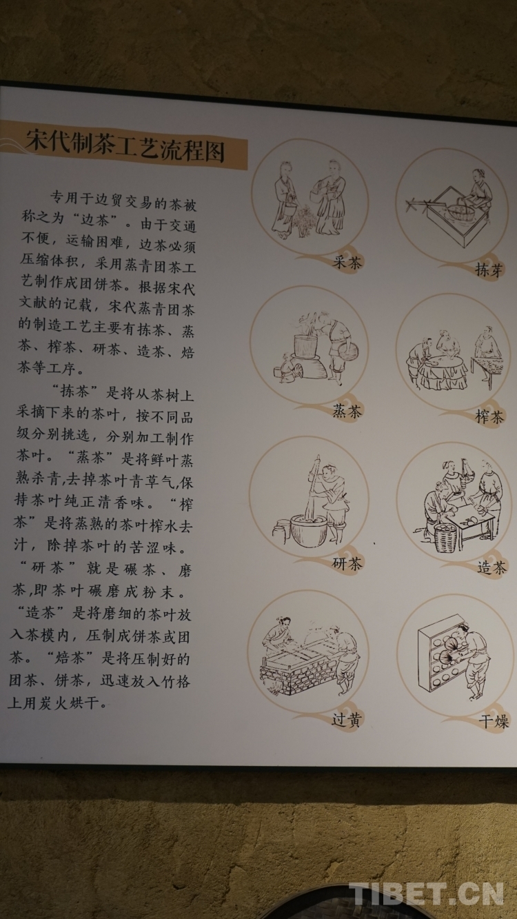 推開茶馬司的大門,出現(xiàn)在眼前的“茶馬司”石碑用漢藏兩種文字記錄著茶馬司的興衰歷史?!八螘r因連年用兵,所需戰(zhàn)馬,多用茶換取。神宗熙寧七年,派李杞入川,籌辦茶馬政事,于名山,以名山茶易馬用……明洪武時,對茶葉實行官買官銷,由茶馬司主持交易……”