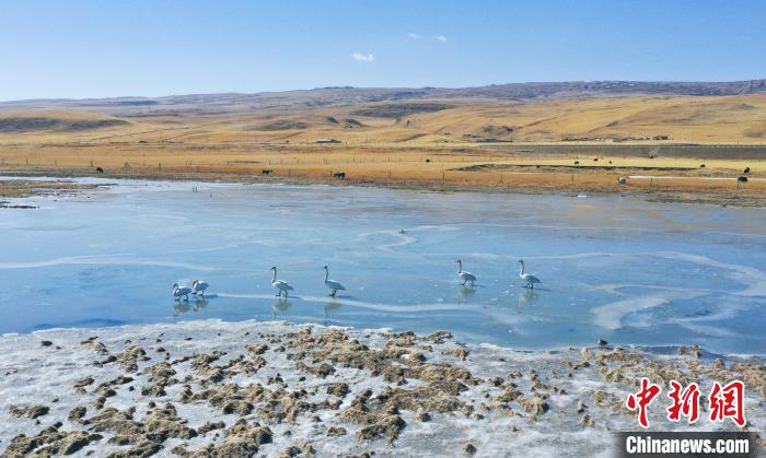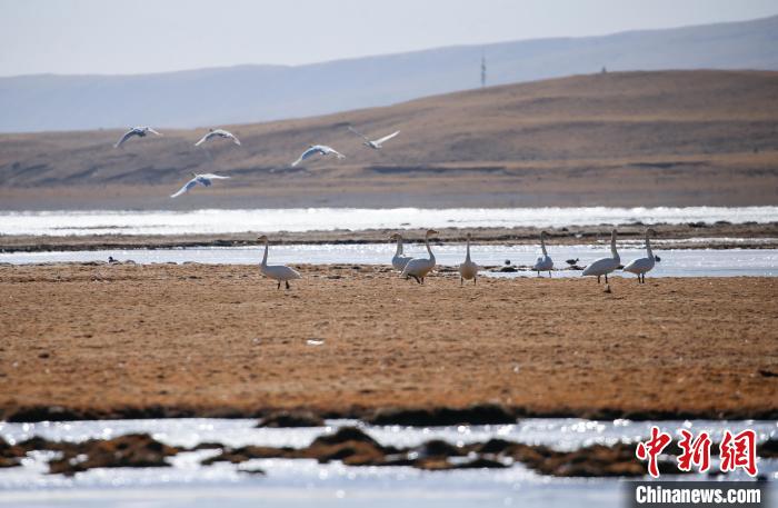 3月13日,青海省海南藏族自治州共和縣境內(nèi)的青海湖泉灣濕地,大天鵝沐浴春日暖陽(yáng)。隨著天氣轉(zhuǎn)暖,大天鵝、斑頭雁、赤麻鴨等水鳥聚集在青海湖泉灣濕地,時(shí)而振翅飛翔、時(shí)而戲水覓食,鳴叫聲不絕,為仍處于冰封的青海湖增添生機(jī)和活力。