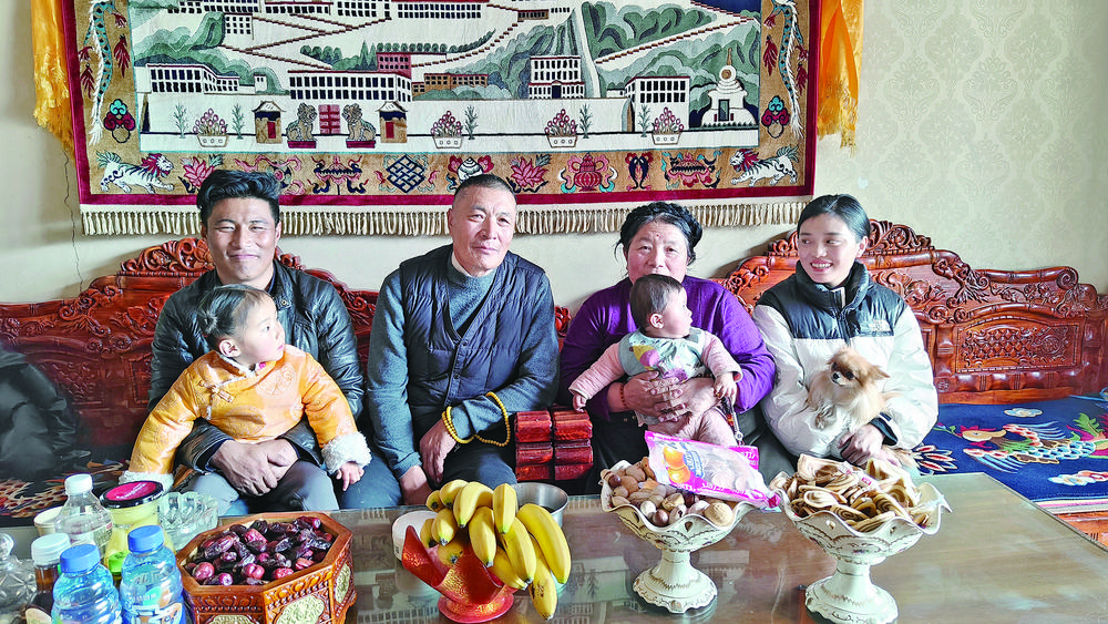 扎西卓瑪(右二)和家人的合影。 楊紅霞 攝