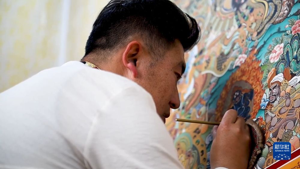 扎西尖措從小拜師學畫。唐卡精妙之處在于“口傳心授”,師傅啟發(fā)并教會扎西尖措藝術(shù)創(chuàng)作的同時,考慮更多的是想讓他把這門手藝傳承下來,將熱貢文化進一步發(fā)揚光大。