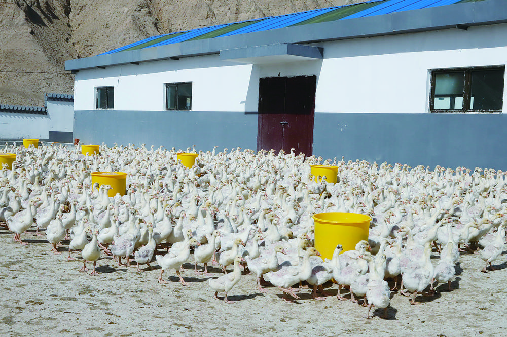色爾加村黨支部書記羊壯項(xiàng)杰看著成群的種鵝,向記者介紹,“幸福鵝”進(jìn)入到生長的關(guān)鍵時(shí)期,飼養(yǎng)員給鵝換上了精粗結(jié)合的飼料補(bǔ)充營養(yǎng),等鵝長得又大又壯,出籠的時(shí)候能賣個(gè)好價(jià)錢。