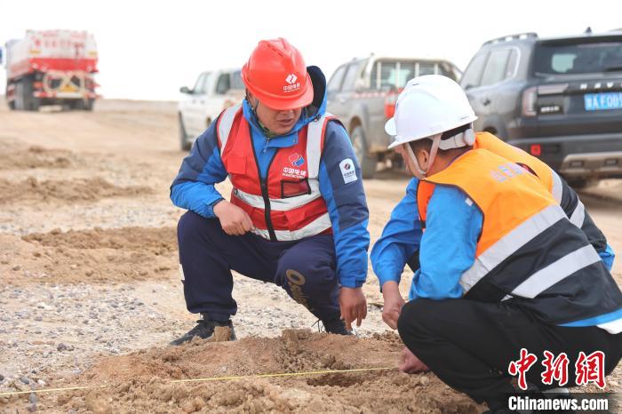 圖為項(xiàng)目現(xiàn)場(chǎng)施工人員正在測(cè)量數(shù)據(jù)。張?zhí)砀?攝