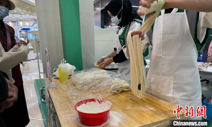 活動(dòng)現(xiàn)場(chǎng),人頭攢動(dòng),展示區(qū)展出拉面成品,可品嘗手工拉面,亦有牦牛肉干、甜醅等青海特色美食,相關(guān)從業(yè)人員“各顯神通”,吸引來(lái)往行人。