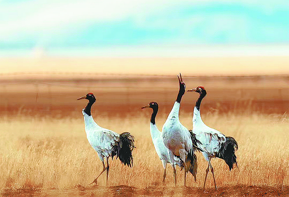 隆寶國家級(jí)自然保護(hù)區(qū)的黑頸鶴。資料圖片