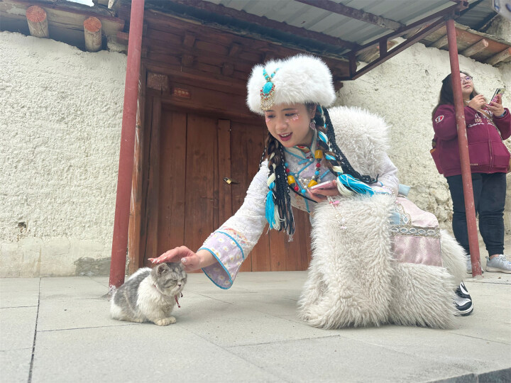 在景區(qū)內(nèi),隨處可見身穿藏族服飾、化上高原紅曬傷妝的游客們變身“扎西和卓瑪”,攝影師圍著她們忙前忙后,快門聲此起彼伏。“嗯,好”“就是這樣,保持笑容”“下巴揚(yáng)起來”……在攝影師的引導(dǎo)下,““扎西和卓瑪””變換著姿勢,拍下一張張景區(qū)打卡照。