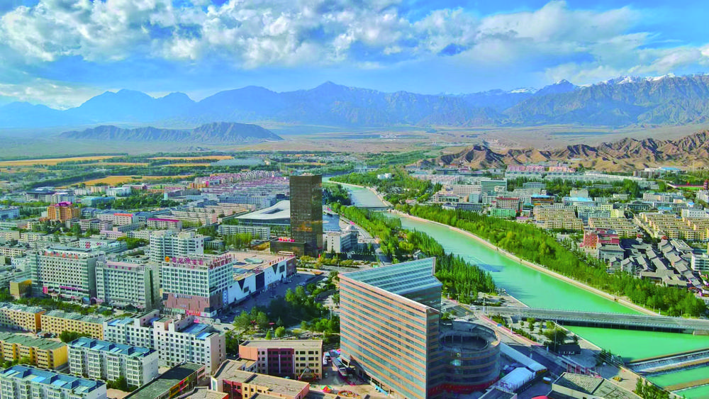 巴音河畔優(yōu)美的城市畫(huà)卷。蘇烽 攝