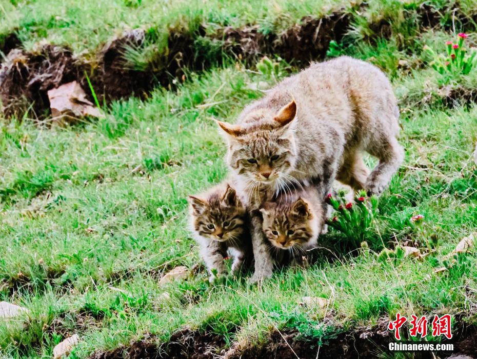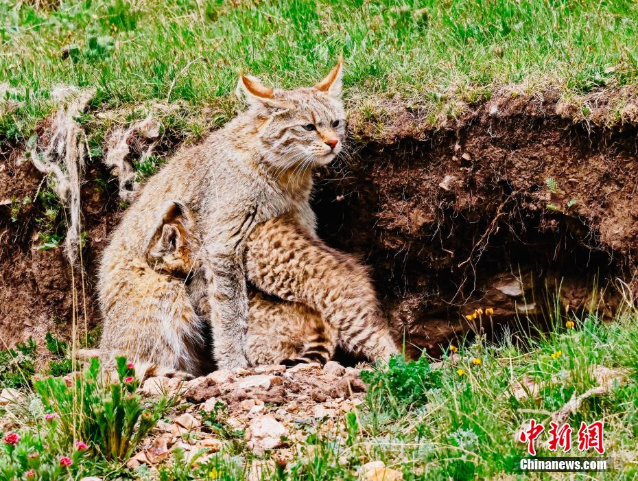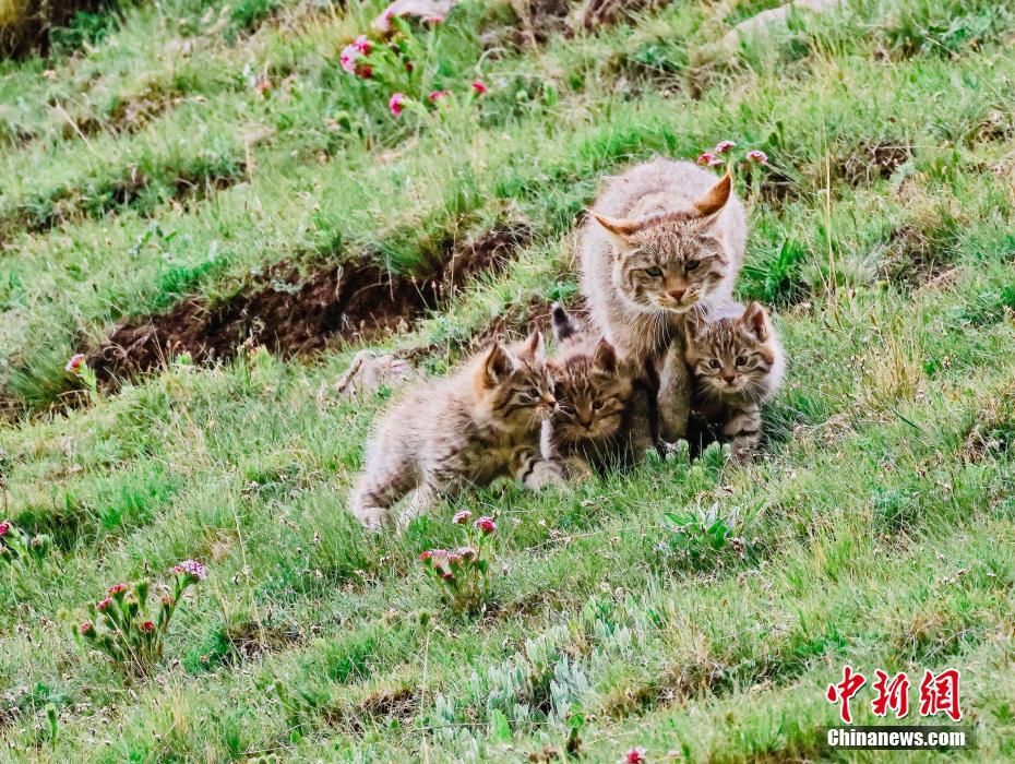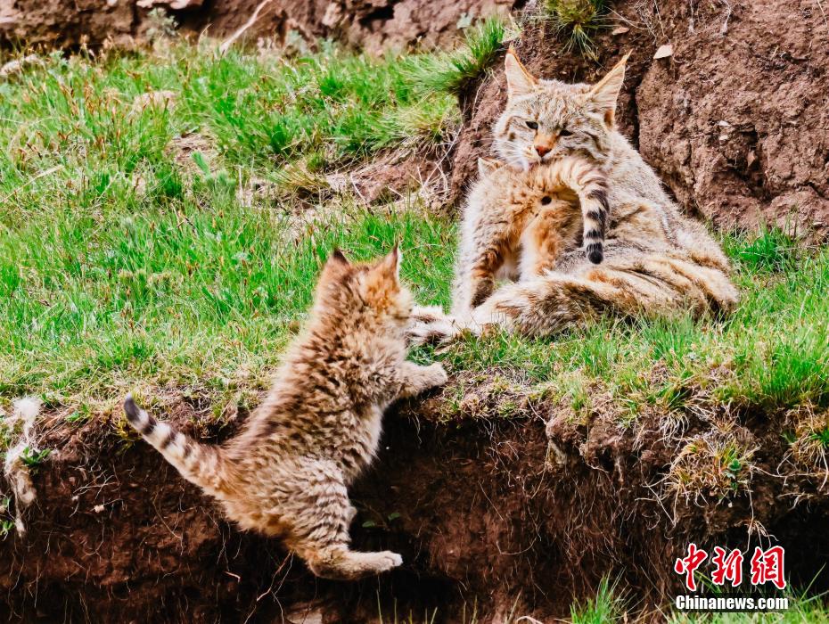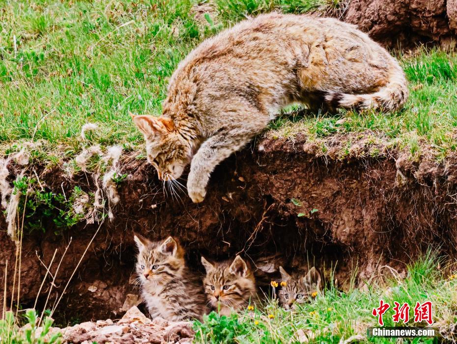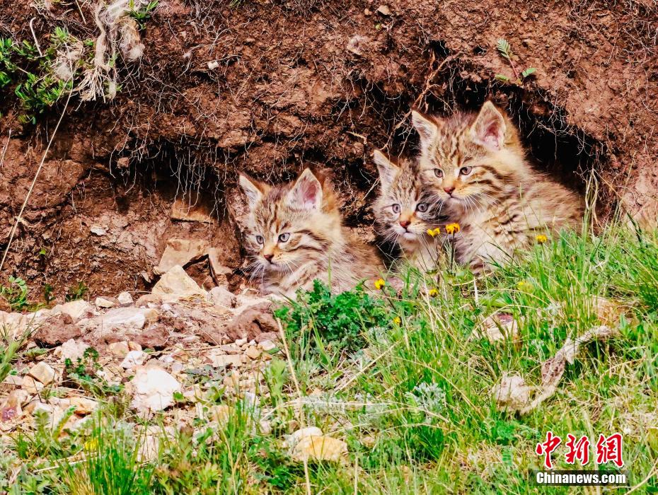 6月15日,盛夏時節(jié),在青海省海北藏族自治州海晏縣哈勒景蒙古族鄉(xiāng)查庫太草原上,攝影愛好者拍攝到荒漠貓幼崽出窩“踏青”的畫面。畫面中,荒漠貓幼崽或是與媽媽嬉戲玩耍,或是“哥仨”追逐打鬧,或是練習(xí)捕獵技巧,甚是呆萌可愛?;哪埛植加谇嗖馗咴瓥|部,是中國特有的貓科動物,國家一級重點保護野生動物。