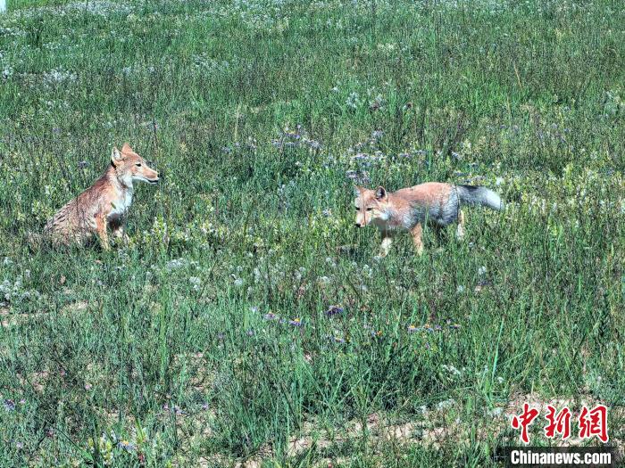 圖為小藏狐在青海湖金沙灣草地上玩耍。中新社記者 李雋 攝