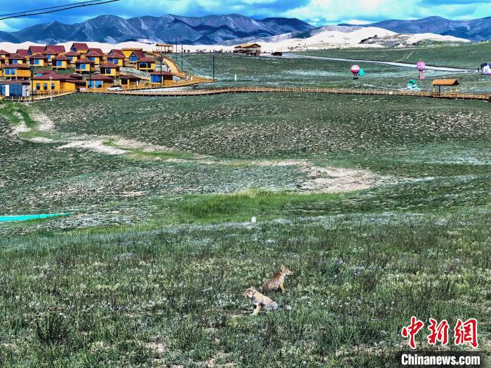 7月3日,記者在青海湖北岸的青海省海北藏族自治州海晏縣金沙灣,近距離拍攝到藏狐“一家五口”在景區(qū)木棧道下出入。景區(qū)工作人員介紹,4只小藏狐在媽媽的帶領下住在棧道下面,不時在棧道旁的草地上嬉戲打鬧,景區(qū)游客可近距離拍攝到這可愛畫面。據(jù)記者觀察,藏狐一家看到人類后并不懼怕,還與人類對視“互動”,最近距離不足兩米。