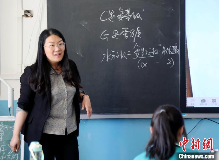 圖為江蘇援青教師王景花在青海省海南藏族自治州高級(jí)中學(xué)講生物課。張?zhí)砀?攝