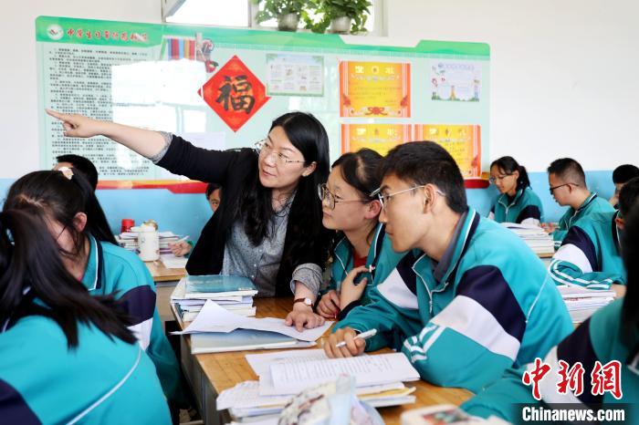 圖為江蘇援青教師王景花在青海省海南藏族自治州高級(jí)中學(xué)輔導(dǎo)學(xué)生。張?zhí)砀?攝