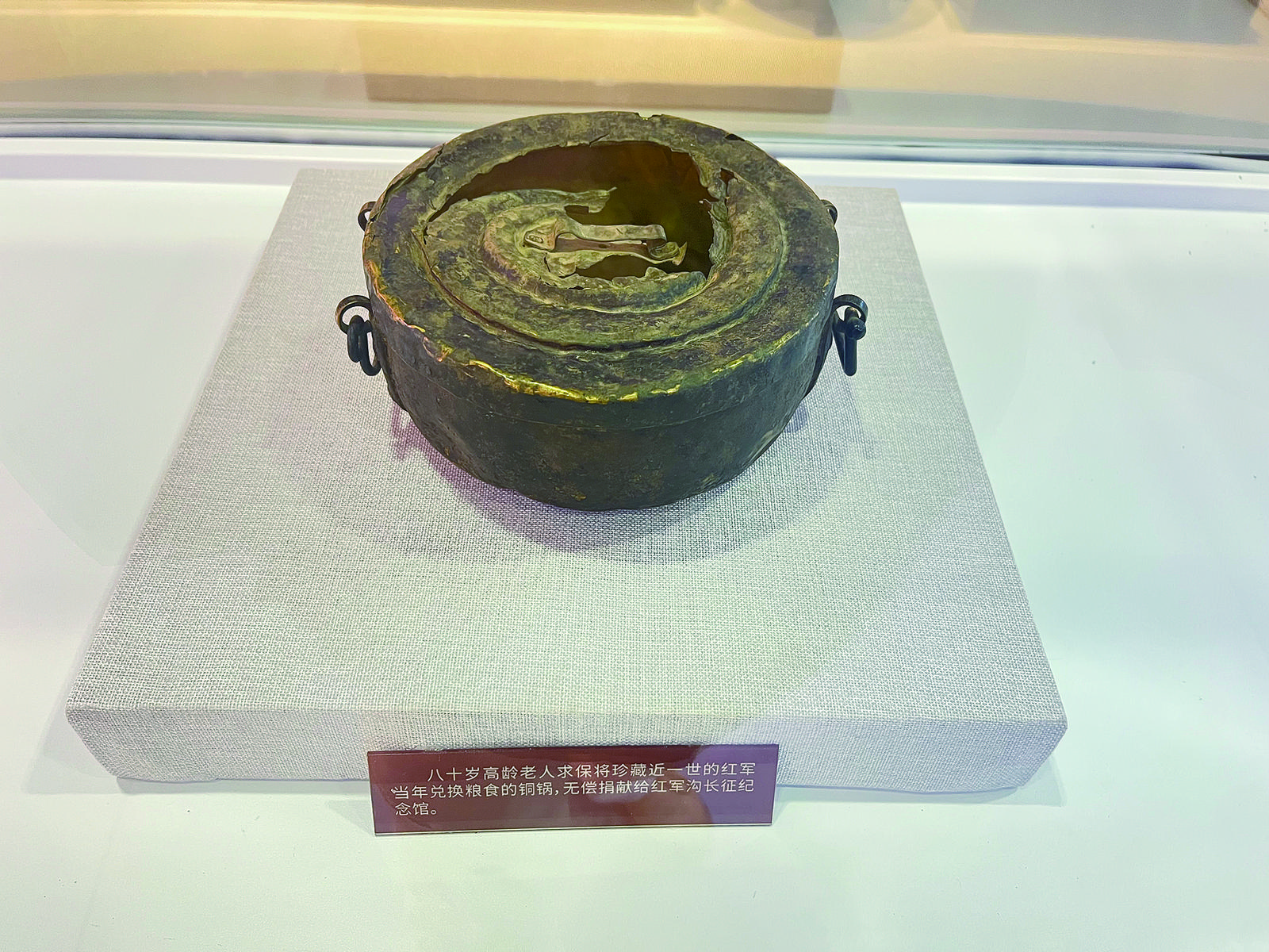 紅軍溝紀念館內(nèi)陳列的銅鍋。