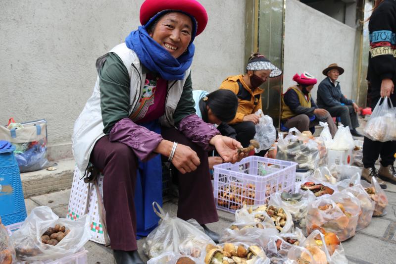 眼下正是野生菌上市時(shí)節(jié),記者在香格里拉市城區(qū)各大菜市場看到,銅綠菌、一窩菌、雞油菌、老人頭等野生菌均已上市,種類繁多、價(jià)格公道,深受消費(fèi)者喜愛。