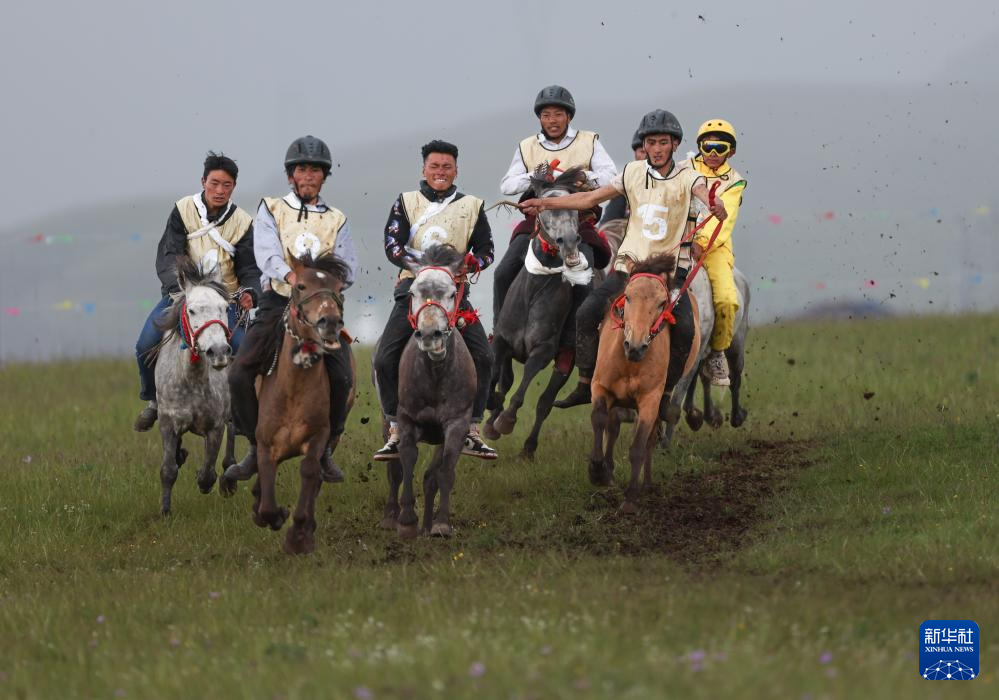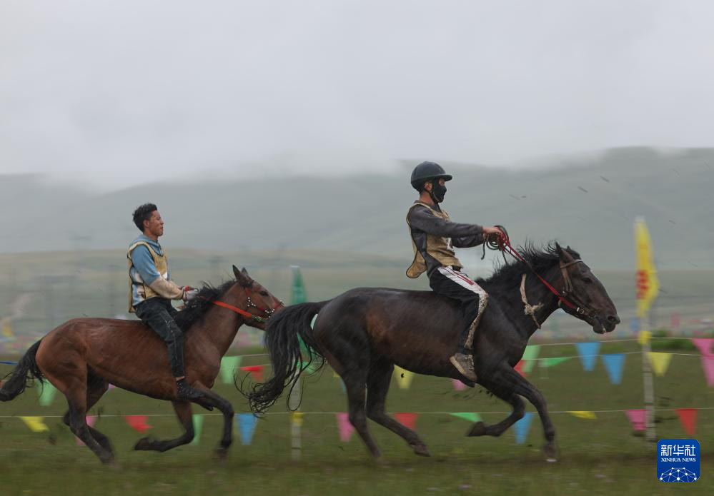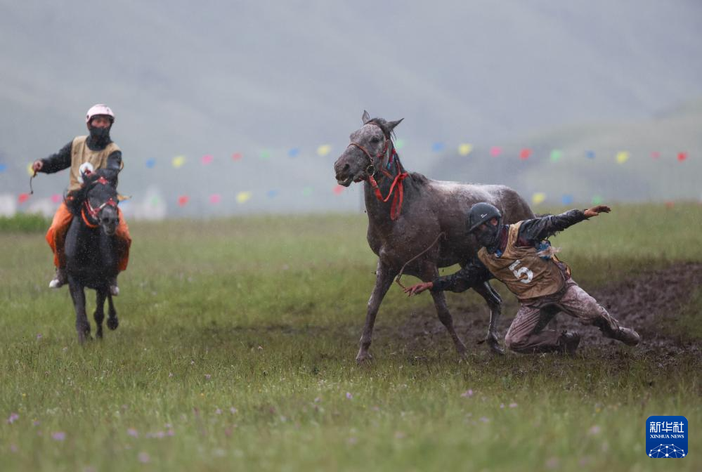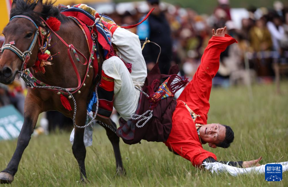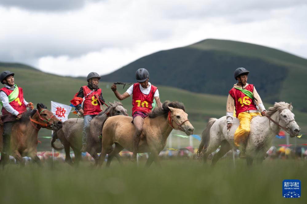 7月28日,當(dāng)?shù)厝罕娫趨⒓域T馬拾哈達(dá)比賽。新華社記者 江宏景 攝