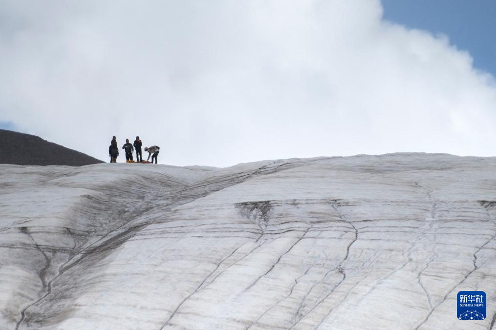 7月25日,在冬克瑪?shù)妆ǎ瓶缄爢T在進(jìn)行冰川厚度探測及冰儲量匡算工作。新華社記者 伍志尊 攝
