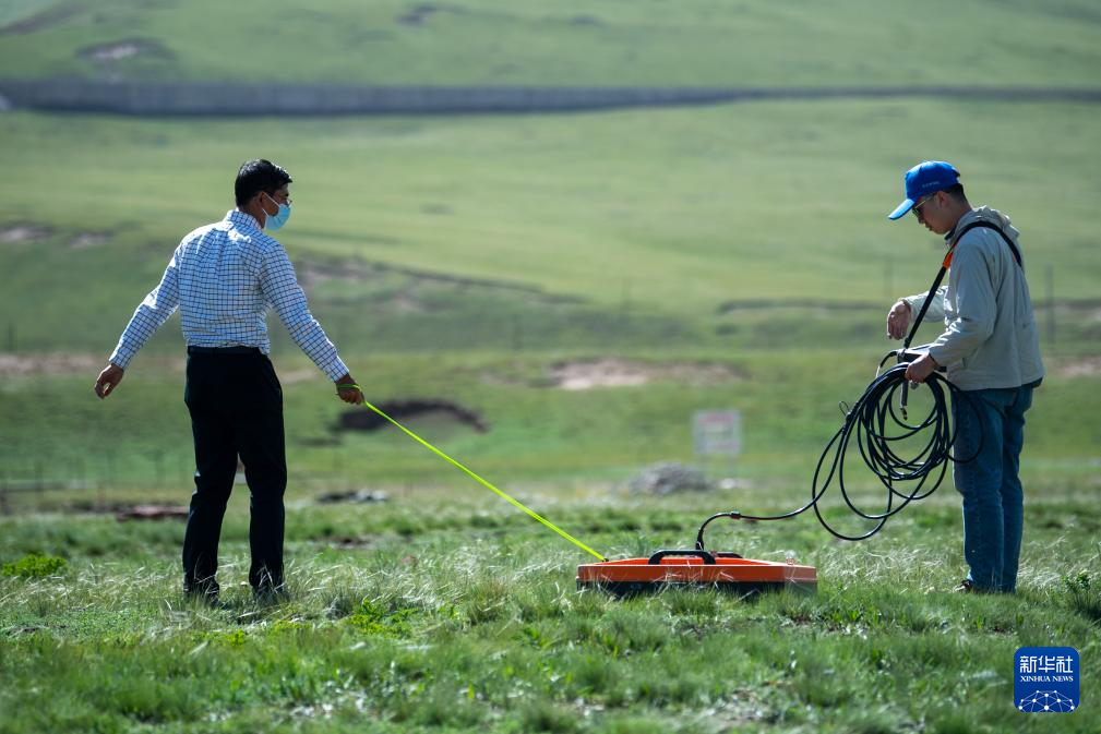 7月24日,科考隊員在通天河科欠曲進(jìn)行地下水水位測量。新華社記者 潘彬彬 攝