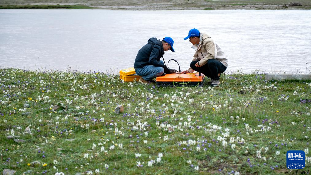 7月23日,科考隊員在治多聶洽曲進(jìn)行地下水水位測量。新華社記者 潘彬彬 攝