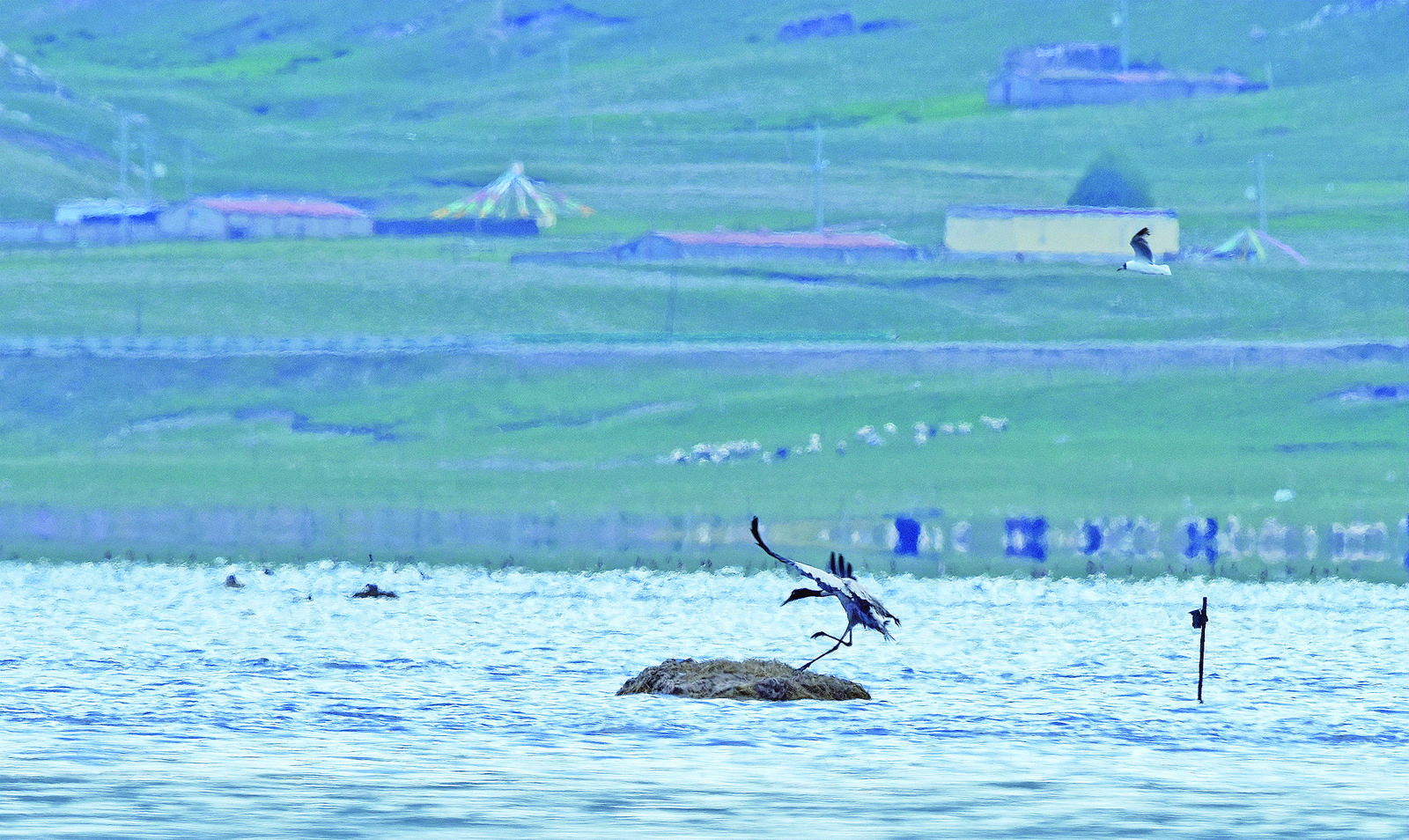 黑頸鶴在管護(hù)員搭建的鳥(niǎo)窩中安家。