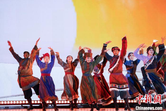 圖為晚會現(xiàn)場進(jìn)行舞蹈表演《黃金騎士》。中新社記者 馬銘言 攝
