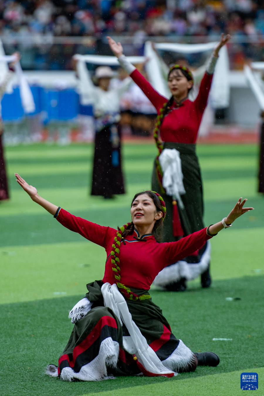 8月8日,在海西蒙古族藏族自治州德令哈市,演員在文藝展演活動(dòng)上表演。新華社 潘彬彬 攝