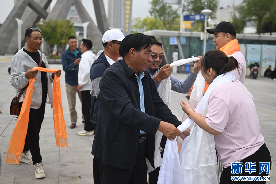 學(xué)生家長為翔宇中學(xué)老師獻(xiàn)哈達(dá)。新華社記者 張龍 攝