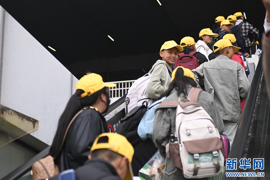 學(xué)生們在火車站集合,整裝待發(fā)。新華社記者 張龍 攝