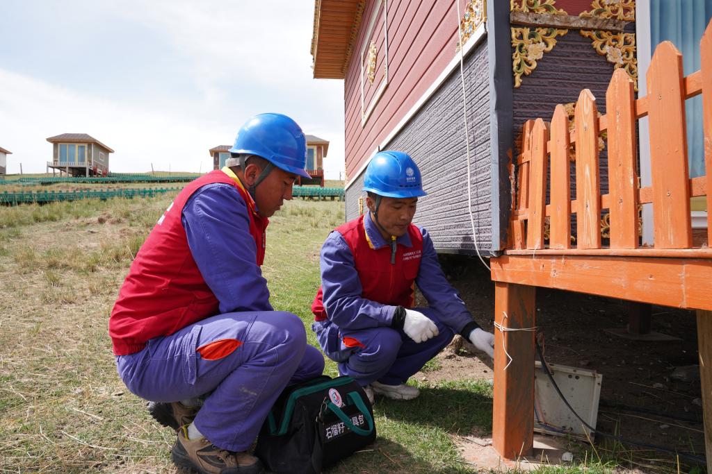 9月2日,“石榴籽”電力流動(dòng)驛站工作人員檢查果洛藏貢麻村崗日梅朵旅游度假村用電情況。(旺瑪多杰 攝)