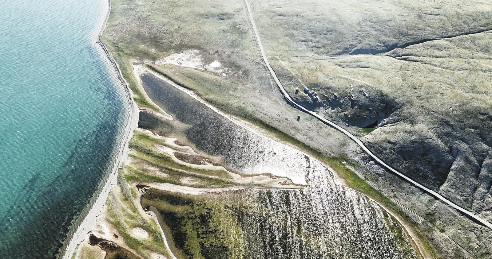 2025年7月25日拍攝的“尕日塘秦刻石”所在地青海省果洛藏族自治州瑪多縣扎陵湖北岸(無人機(jī)照片)。 新華社記者 杜笑微 攝