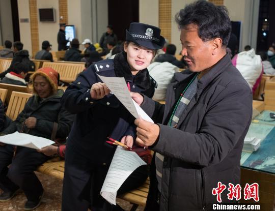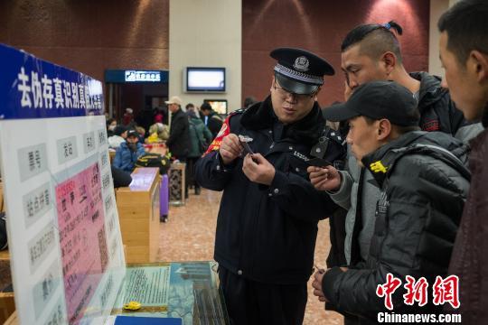 拉薩鐵路公安處民警為旅客講解如何識(shí)別假火車(chē)票。 何蓬磊 攝
