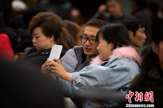 旅客在候車(chē)室合影。 何蓬磊 攝