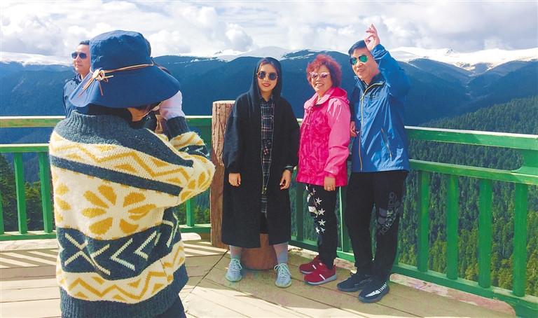 進(jìn)入6月,天氣轉(zhuǎn)暖,林芝旅游市場(chǎng)逐漸升溫,大峽谷、南伊溝、魯朗林海等旅游景點(diǎn)的游客明顯增多。與此同時(shí),林芝市各縣區(qū)、各旅游景區(qū)、賓館酒店也加大協(xié)調(diào)對(duì)接力度,認(rèn)真做好接待服務(wù)工作,進(jìn)一步完善全市公共服務(wù)設(shè)施,積極改善產(chǎn)品和服務(wù)供給,讓游客“進(jìn)得來、留得住、玩得好”。圖為游客在魯朗林海景區(qū)拍照。記者 潘璐 攝