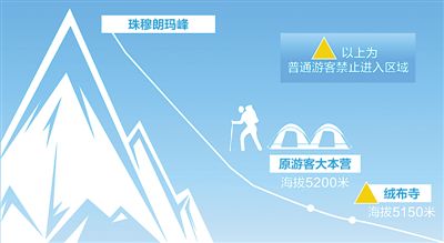 珠峰管理局副局長(zhǎng)格桑介紹,此次主要針對(duì)的是普通游客,原來(lái)海拔5200米的游客大本營(yíng)被撤至海拔5150米的絨布寺一帶。