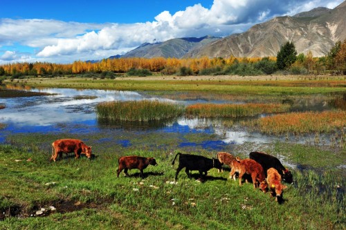 廣袤、高遠(yuǎn),這是許多人對(duì)西藏的第一印象。然而,在達(dá)孜,有一塊土地,卻有著煙雨江南的繾綣與綺麗。她就是金色池塘。