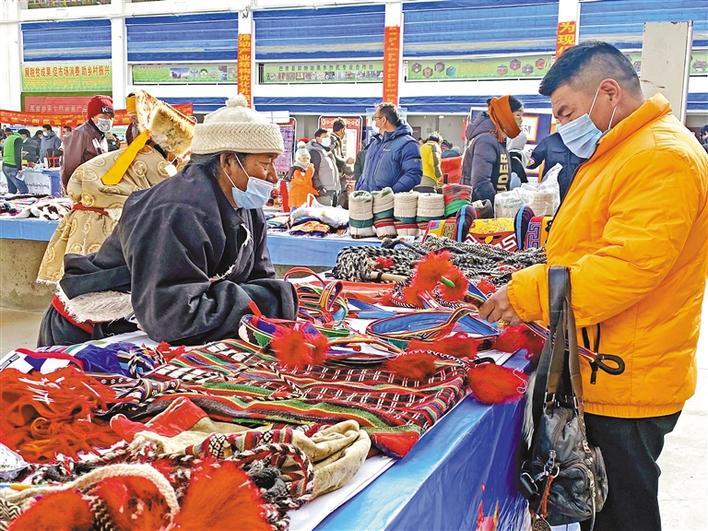 各大展臺(tái)上,牛羊肉、奶渣、酥油等農(nóng)畜產(chǎn)品,蟲草、貝母、人參果等中藥材,各具特色的民族手工藝品等,引得人們流連忘返?!拔覀兊难┑匮ナ羌兪止ぶ谱鞯?,皮毛一體,這里面是羊毛,很暖和,高筒的180元一雙,低筒的150元一雙,擺攤不到一小時(shí),我們已賣出了8雙。”來自雙湖縣嘎措鄉(xiāng)合作社的羅培笑逐顏開。據(jù)羅培介紹,這是他們合作社第6次參加該展銷會(huì),除了賣手工藝品,他們還賣牛羊肉?!爸挥?jì)算手工藝品,我們每次銷售額都在3萬元左右?!?/p>