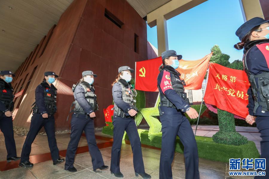 中國人民警察節(jié)當日,青藏鐵路拉薩火車站派出所“女子格?;ā本M投入到忙綠的工作中。
