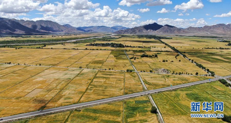 俯瞰西藏日喀則市白朗縣的農(nóng)田(2019年8月31日攝,無人機(jī)照片)。新華社記者 晉美多吉 攝
