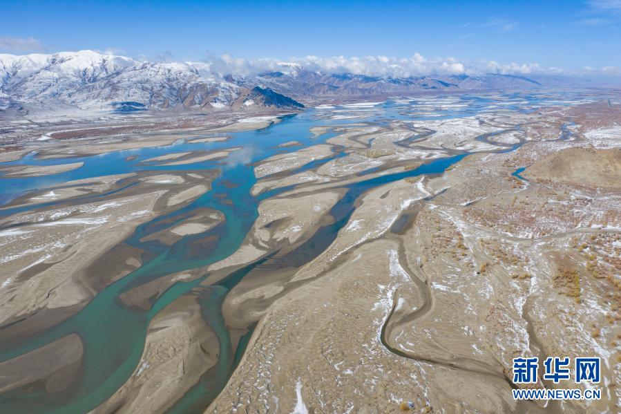 這是2020年3月24日拍攝的雅魯藏布江雪景(無人機(jī)照片)。新華社記者 普布扎西 攝