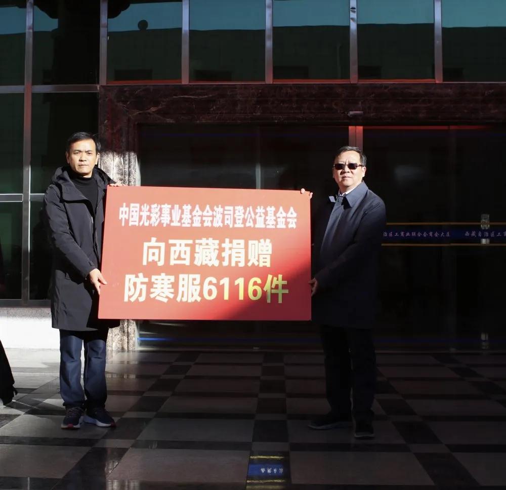 2021年1月8日,“中國光彩事業(yè)波司登防寒服情暖西藏”捐贈(zèng)儀式在拉薩隆重舉行。西藏自治區(qū)黨委統(tǒng)戰(zhàn)部副部長、西藏自治區(qū)工商聯(lián)黨組書記王念東,波司登集團(tuán)黨委副書記、波司登公益基金會(huì)理事長朱鈞,西藏自治區(qū)工商聯(lián)黨組成員、副主席陸紅軍,西藏自治區(qū)工商聯(lián)黨組成員、副主席、秘書長、西藏自治區(qū)光彩事業(yè)促進(jìn)會(huì)秘書長張蓉出席了捐贈(zèng)儀式。