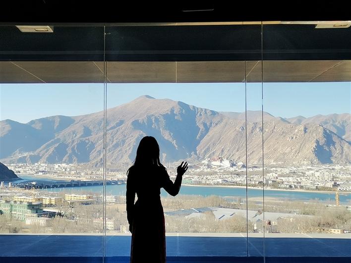 西藏非遺博物館位于拉薩河南岸的慈覺林文創(chuàng)園內(nèi),主體建筑共五層,目前開放參觀的是一、二層主展區(qū),共展出50余項國家級非遺項目——包括天文歷算、藏醫(yī)藥、藏紙和雕版印刷、紡織技藝、傳統(tǒng)服飾等,大家熟悉的唐卡、藏香、牛皮船,在這里也能看到。位于博物館五層的互動體驗區(qū)是整座建筑的一大亮點。這里擁有絕佳的觀景視角,遠(yuǎn)眺布達拉宮,俯瞰拉薩河谷,壯美的景色讓人流連忘返。