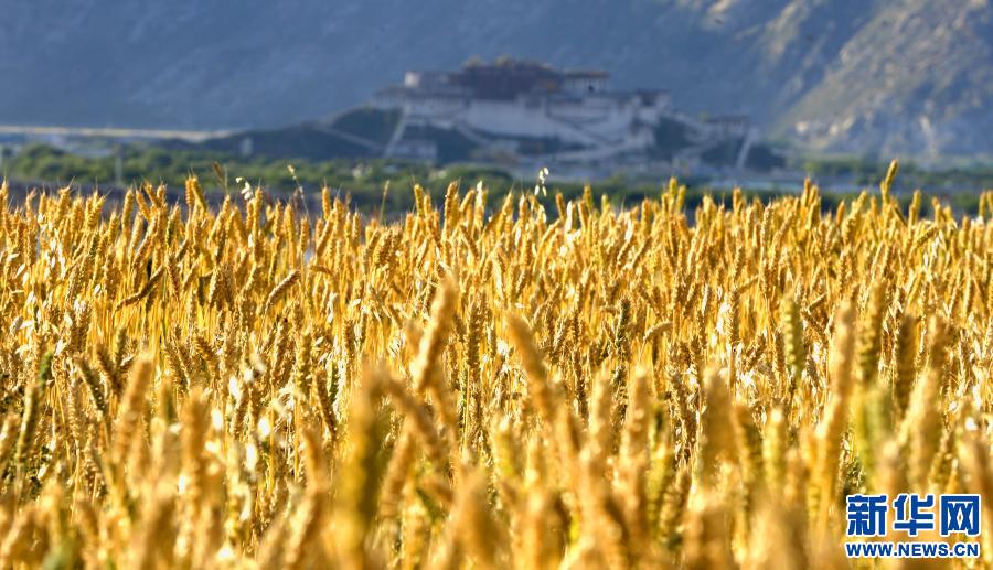 拉薩布達(dá)拉宮對(duì)面的金色麥田(2009年8月21日攝)。新華社記者 普布扎西 攝