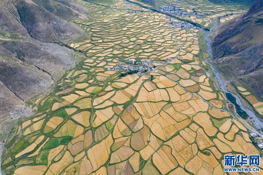 位于拉薩河谷的青稞田(2020年9月9日攝,無(wú)人機(jī)照片)。新華社記者 普布扎西 攝