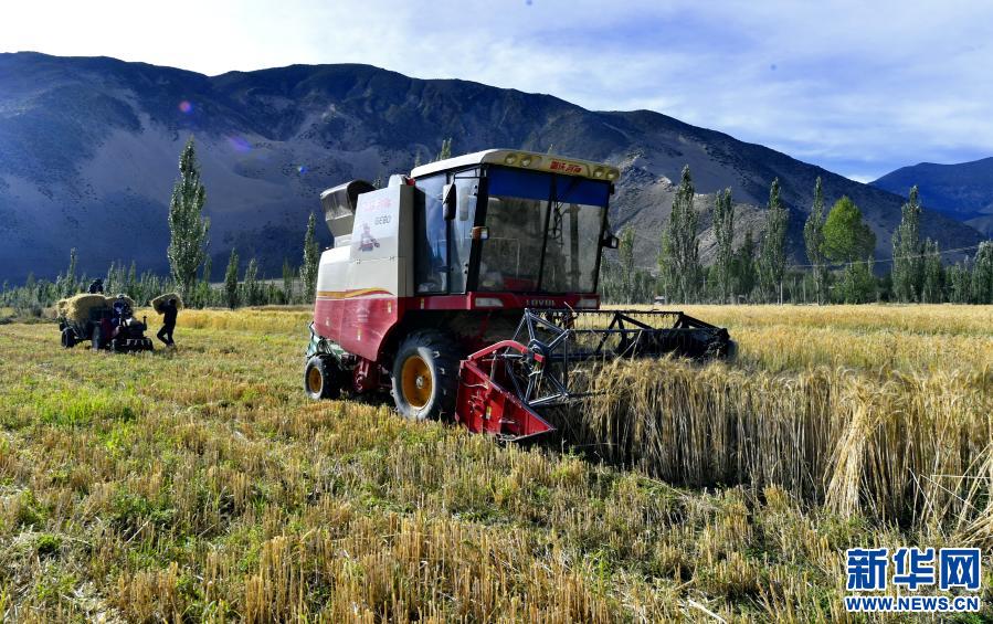 西藏山南市扎囊縣松卡居委會(huì)的居民在收割青稞(2019年8月29日攝)。新華社記者 張汝鋒 攝